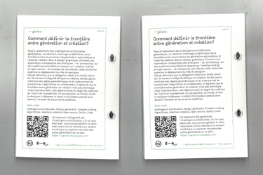 Un mémoire écrit, codé et imprimé pour clôturer mon parcours à l’École Estienne. Face au raz-de-marée des IA génératives, j'ai voulu questionner notre rôle : va-t-on rester de simples usagers de « boîtes noires » ou devenir les maîtres de nos propres outils ? En explorant des outils de design génératif, de creative coding et de design paramétrique, je découvre que la création ne se niche pas dans l’exécution, mais dans l’intention. Ce projet, de la théorie à l’objet éditorial, revendique la génération comme un véritable terrain de collaboration artistique, et non comme une simple délégation, en invitant à hybrider les pratiques. Je vous invite à visiter les pages dédiée sur mon site si le sujet vous intéresse :)