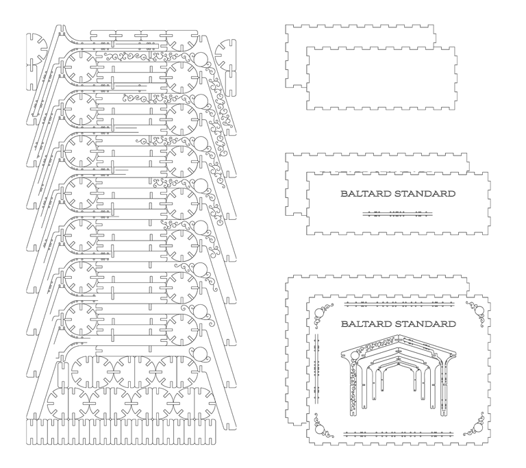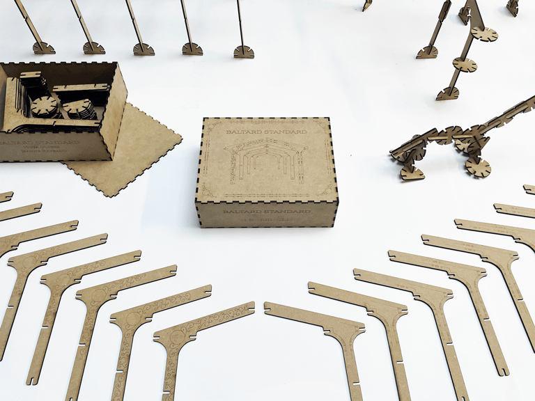 Un jeu de construction inspiré des Halles de Victor Baltard, conçu en collaboration et illustré par Jeanne Raybaud. À travers l’assemblage de modules en MDF découpés et gravés au laser, le projet invite à explorer l’architecture métallique du XIXe siècle. Conçus pour être combinés à l’infini, ces éléments permettent de recréer les structures emblématiques de l’ère industrielle ou d’imaginer de nouvelles formes. Une invitation ludique à construire et déconstruire pour mettre l’héritage de Baltard à portée de main, et qui a été exposé à la boutique de la Mairie de Paris à l'occasion des 220 ans de sa naissance.